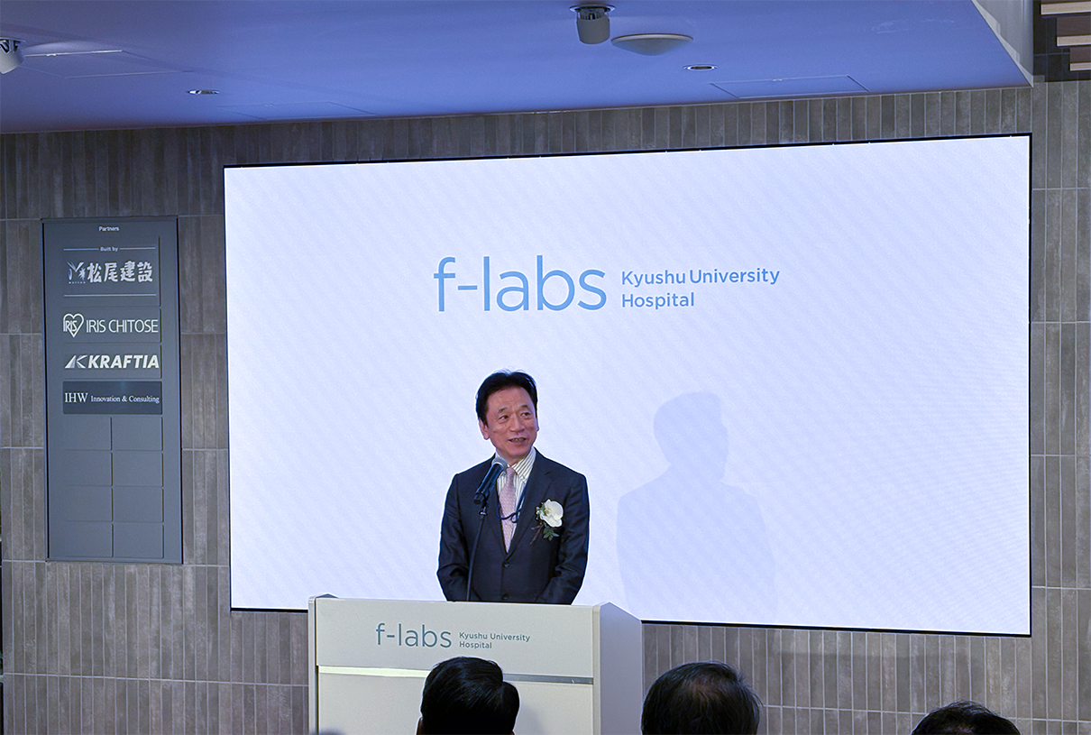 The opening ceremony for f-labs was held on January 26, 2026. Yoshikazu Yonemitsu, M.D., Ph.D. (CSO/CMO; Professor, Graduate School of Pharmaceutical Sciences, Kyushu University), took the stage at the event. In his address, Prof. Yonemitsu discussed the prospects for future business expansion utilizing the new CPC and expressed his high expectations for the role of f-labs as a key hub for life sciences.